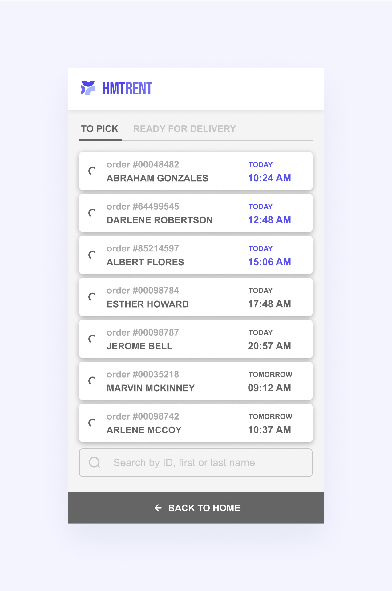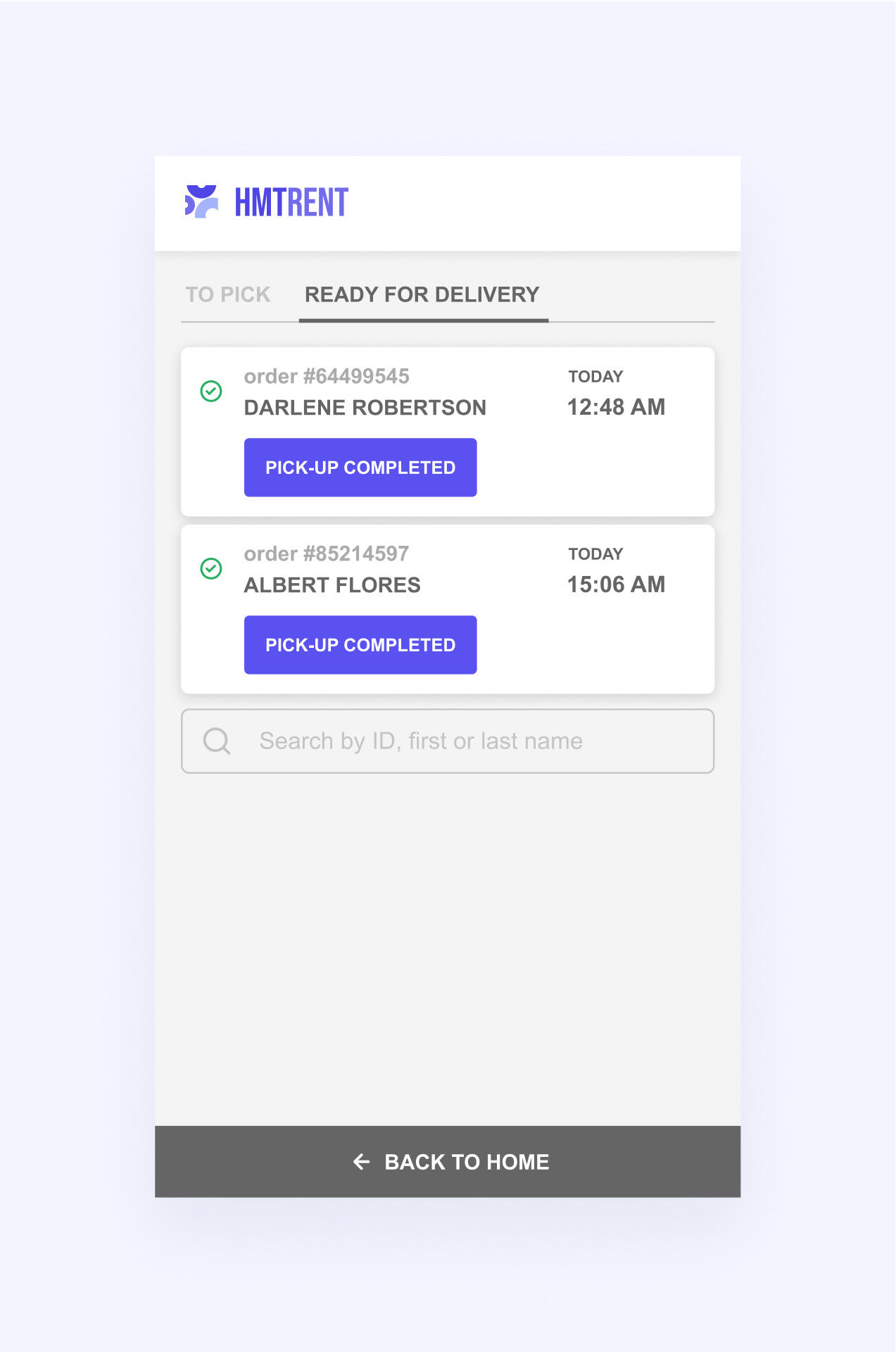 Personal workspace allows you to manage reservations and requests history, payment methods and pick-up.